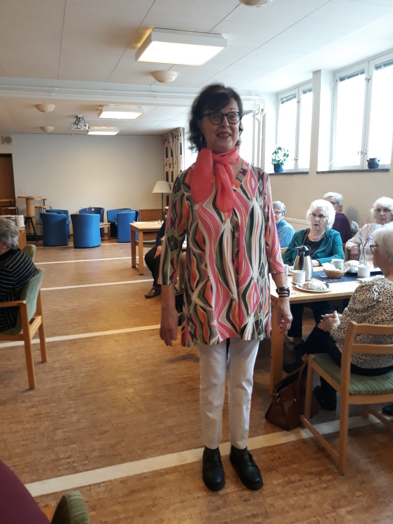Klädvisningen tog som sig bör rejält med tid i anspråk och under tiden intog medlemmarna kaffe med god macka och kakor.